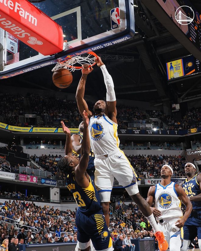步行者队的奈史密斯得到31分和6个篮板,西亚卡姆得到27分和5个篮板,Q-杰克逊得到25分、6个篮板和10次助攻,I-杰克逊得到10分和8个篮板。勇士队的库里得到24分,巴特勒得到20分、5个篮板和7次助攻,库明加得到17分和5个篮板,波兹姆斯基得到16分和4个篮板,格林得到8分和11个篮板。